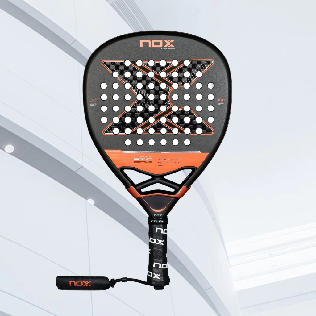 - Carbon 12K Frame: Construida con fibra de carbono 12K de alta resistencia que proporciona mayor durabilidad y potencia en cada golpe, ideal para un juego ofensivo.