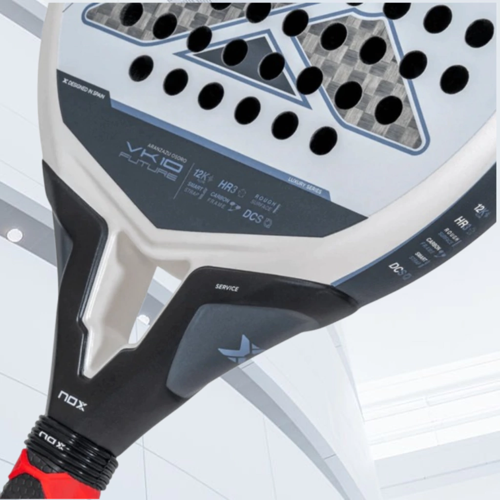 - Carbon 12K Frame: Construida con fibra de carbono 12K de alta resistencia que proporciona mayor durabilidad y potencia en cada golpe, ideal para un juego ofensivo.