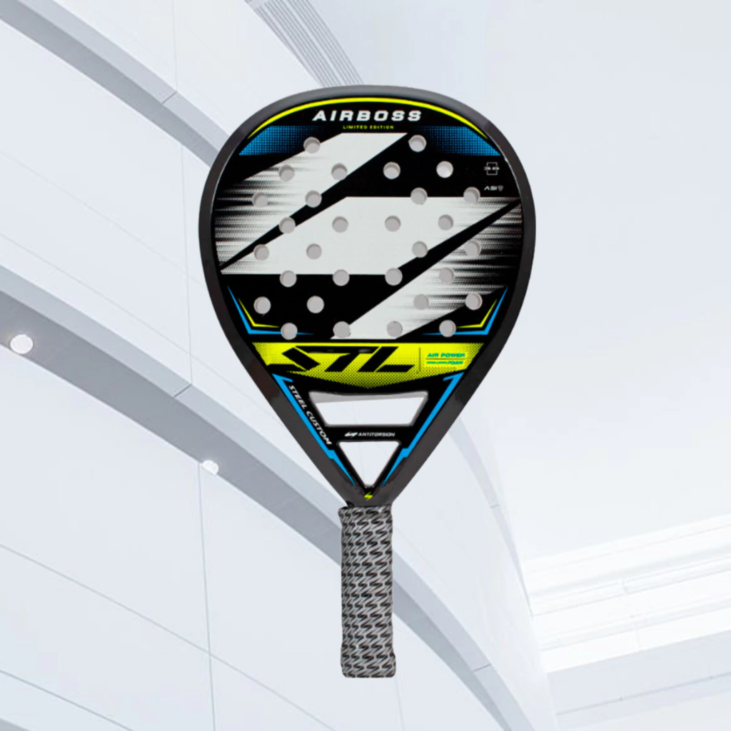 ¿Para que jugadores es la Air Boss? Te diría que la Steal Custom Air Boss es perfecta para jugadores con experiencia que ya han perfeccionado sus habilidades y buscan un nivel superior en su juego. Su diseño está pensado para maximizar tanto la potencia como la precisión, lo que requiere un buen manejo técnico. Si eres un jugador que ya domina los diferentes golpes y entiendes bien la estrategia en la pista, esta pala puede ayudarte a explotar al máximo tu potencial, ofreciéndote ese equilibrio ideal entre control y fuerza para llevar tu juego al siguiente nivel. Es una herramienta excepcional para quienes aspiran a dominar cada aspecto del juego y buscan una ventaja competitiva.